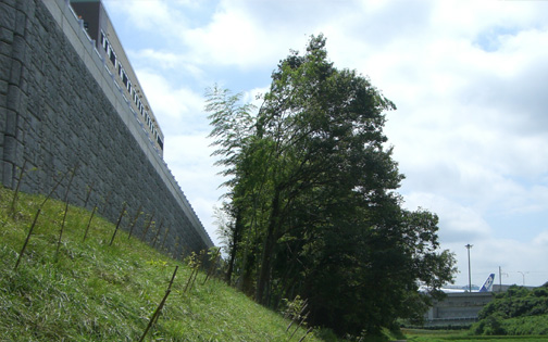 工場立地を巡る環境は、以前にも増して多様化かつ複雑化しています。こちらの企業様もグローバル化の進展による生産拠点の統廃合により、国際空港近傍の既存の工場を拡張することが必要になりました。現場打ち擁壁との比較で総合的な観点から、テールアルメ擁壁が採用になりました。国土強靭化の点から、今後予想され得る地震・津波等の災害リスクに備えた企業立地の分散化、高台移転等にも耐震性の証明されたテールアルメ擁壁はお役に立てます。