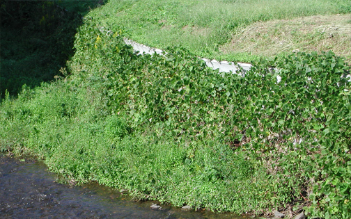 河川護岸の整備事業においてコンクリートの露出を避け、多自然型川づくりを行いました。