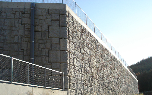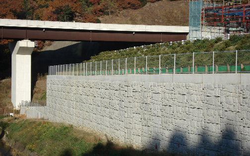 幸田営業所造成工事に採用された延長189m、壁面積1070㎡のテールアルメ壁です。国道23号岡崎バイパスの幸田桐山IICに隣接し、物流面でも好立地な場所となっております。