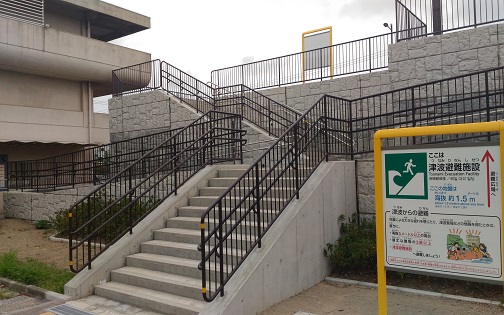 この際、海抜5m以上の高台か、鉄筋・鉄骨鉄筋コンクリート造の3階建て以上の建物への避難が必要になりますが、海と2本の川に囲まれた同地域は、周辺に高層な建物もないため、迅速な避難が難しい場所とされてきました。そこで、行政は東日本大震災を契機に、素早く避難施設の設置を決定し、着工しました。